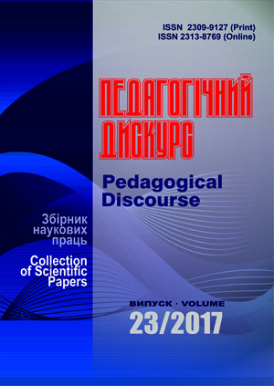No 23 (2017)Collection of scientific papers «Pedagogical Discourse» contains the articles of theoretical and experimental character on the topical problems of theory and history of pedagogics, school organization and management, methods of teaching, upbringing and career guidance of students in educational establishments and out-of-school institutions, theory and methods of education management, professional formation of students, pedagogical practice, comparative pedagogics, social pedagogics, multistage pedagogical education, etc.