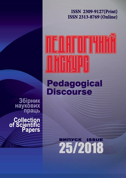 No 22 (2017)Collection of scientific papers «Pedagogical Discourse» contains the articles of theoretical and experimental character on the topical problems of theory and history of pedagogics, school organization and management, methods of teaching, upbringing and career guidance of students in educational establishments and out-of-school institutions, theory and methods of education management, professional formation of students, pedagogical practice, comparative pedagogics, social pedagogics, multistage pedagogical education, etc.
