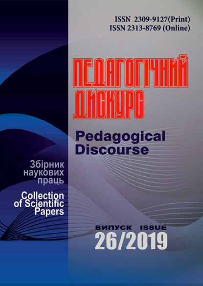 No 26 (2019)Collection of scientific papers «Pedagogical Discourse» contains the articles of theoretical and experimental character on the topical problems of theory and history of pedagogics, school organization and management, methods of teaching, upbringing and career guidance of students in educational establishments and out-of-school institutions, theory and methods of education management, professional formation of students, pedagogical practice, comparative pedagogics, social pedagogics, continuing pedagogical education, etc.