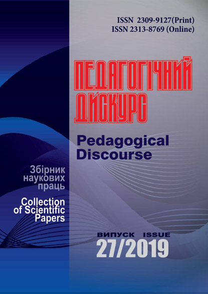 No 27 (2019)Collection of scientific papers «Pedagogical Discourse» contains the articles of theoretical and experimental character on the topical problems of theory and history of pedagogics, school organization and management, methods of teaching, upbringing and career guidance of students in educational establishments and out-of-school institutions, theory and methods of education management, professional formation of students, pedagogical practice, comparative pedagogics, social pedagogics, continuing pedagogical education, etc.