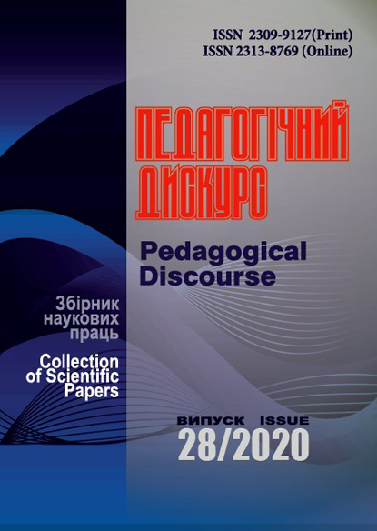 No 28 (2020)Collection of scientific papers «Pedagogical Discourse» contains the articles of theoretical and experimental character on the topical problems of theory and history of pedagogics, school organization and management, methods of teaching, upbringing and career guidance of students in educational establishments and out-of-school institutions, theory and methods of education management, professional formation of students, pedagogical practice, comparative pedagogics, social pedagogics, continuing pedagogical education, etc.