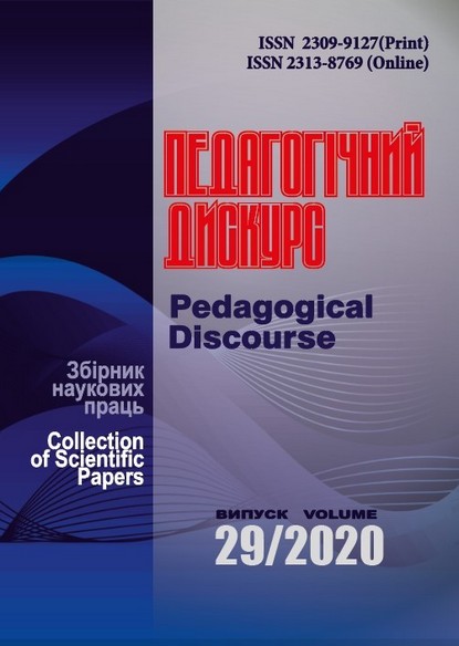No 29 (2020)Collection of scientific papers «Pedagogical Discourse» contains the articles of theoretical and experimental character on the topical problems of theory and history of pedagogics, school organization and management, methods of teaching, upbringing and career guidance of students in educational establishments and out-of-school institutions, theory and methods of education management, professional formation of students, pedagogical practice, comparative pedagogics, social pedagogics, continuing pedagogical education, etc.