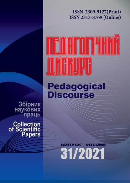 No 31 (2021)Collection of scientific papers «Pedagogical Discourse» contains the articles of theoretical and experimental character on the topical problems of theory and history of pedagogics, school organization and management, methods of teaching, upbringing and career guidance of students in educational establishments and out-of-school institutions, theory and methods of education management, professional formation of students, pedagogical practice, comparative pedagogics, social pedagogics, continuing pedagogical education, etc.