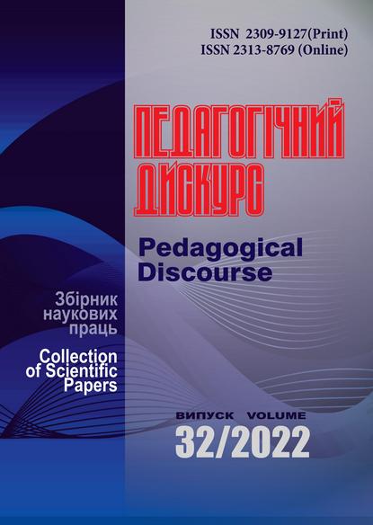 No 32 (2022)Collection of scientific papers «Pedagogical Discourse» contains the articles of theoretical and experimental character on the topical problems of theory and history of pedagogics, school organization and management, methods of teaching, upbringing and career guidance of students in educational establishments and out-of-school institutions, theory and methods of education management, professional formation of students, pedagogical practice, comparative pedagogics, social pedagogics, continuing pedagogical education, etc.
