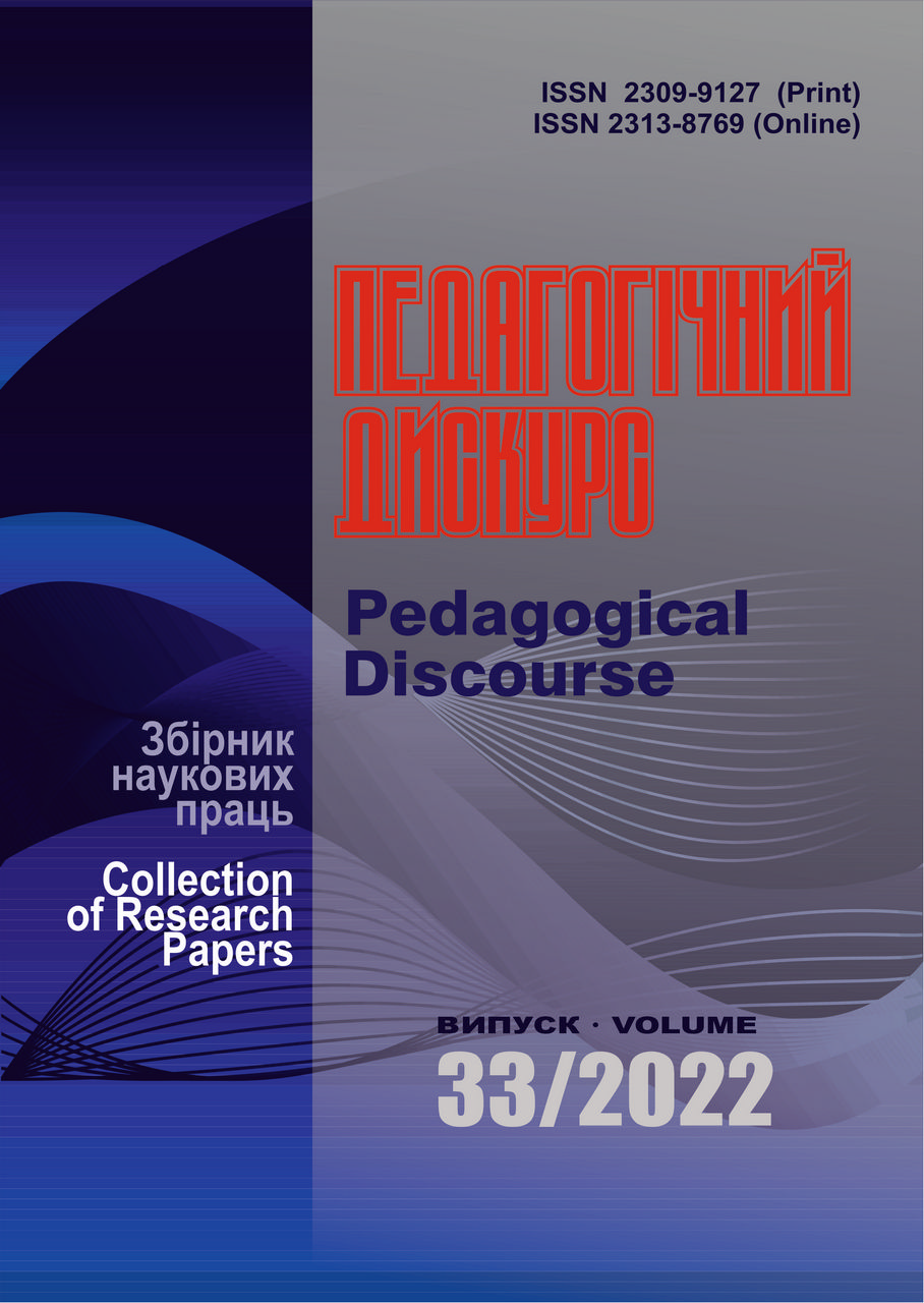 No 33 (2022)Collection of scientific papers «Pedagogical Discourse» contains the articles of theoretical and experimental character on the topical problems of theory and history of pedagogics, school organization and management, methods of teaching, upbringing and career guidance of students in educational establishments and out-of-school institutions, theory and methods of education management, professional formation of students, pedagogical practice, comparative pedagogics, social pedagogics, continuing pedagogical education, etc.