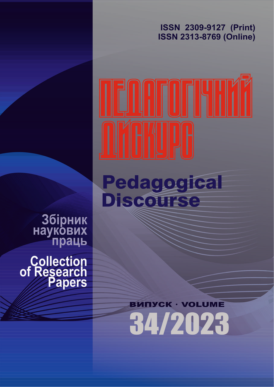 No 34 (2023)Collection of scientific papers «Pedagogical Discourse» contains the articles of theoretical and experimental character on the topical problems of theory and history of pedagogics, school organization and management, methods of teaching, upbringing and career guidance of students in educational establishments and out-of-school institutions, theory and methods of education management, professional formation of students, pedagogical practice, comparative pedagogics, social pedagogics, continuing pedagogical education, etc.