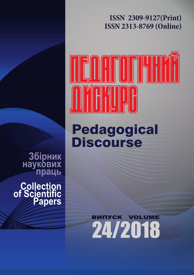 No 24 (2018)Collection of scientific papers «Pedagogical Discourse» contains the articles of theoretical and experimental character on the topical problems of theory and history of pedagogics, school organization and management, methods of teaching, upbringing and career guidance of students in educational establishments and out-of-school institutions, theory and methods of education management, professional formation of students, pedagogical practice, comparative pedagogics, social pedagogics, continuing pedagogical education, etc.
